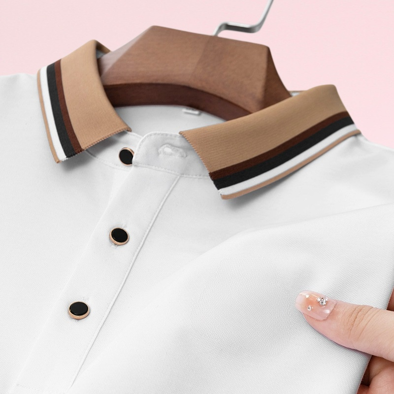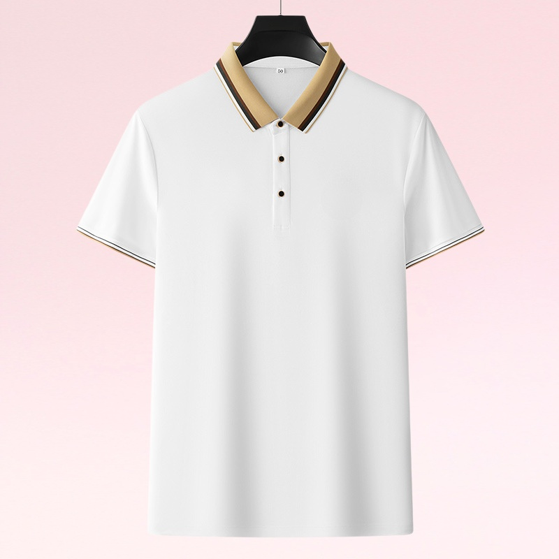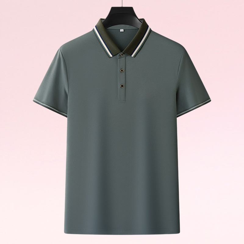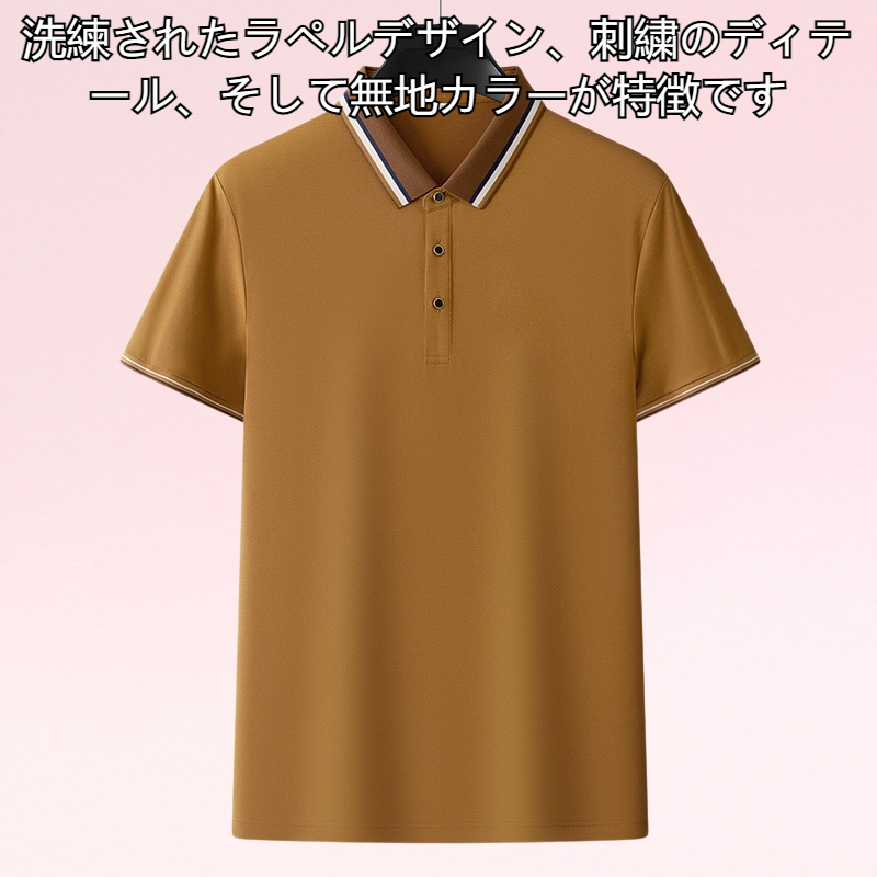 通気性に優れたピケメッシュ素材、上品なラペルデザイン、刺繍アクセント、無地で着回しやすい夏用メンズポロシャツ。
